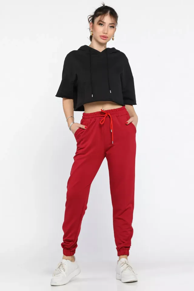 بنطال واسع مع تفصيل فلكرو لاصق للإغلاق. تصميم عملي يمنحك مرونة إضافية للنساء.