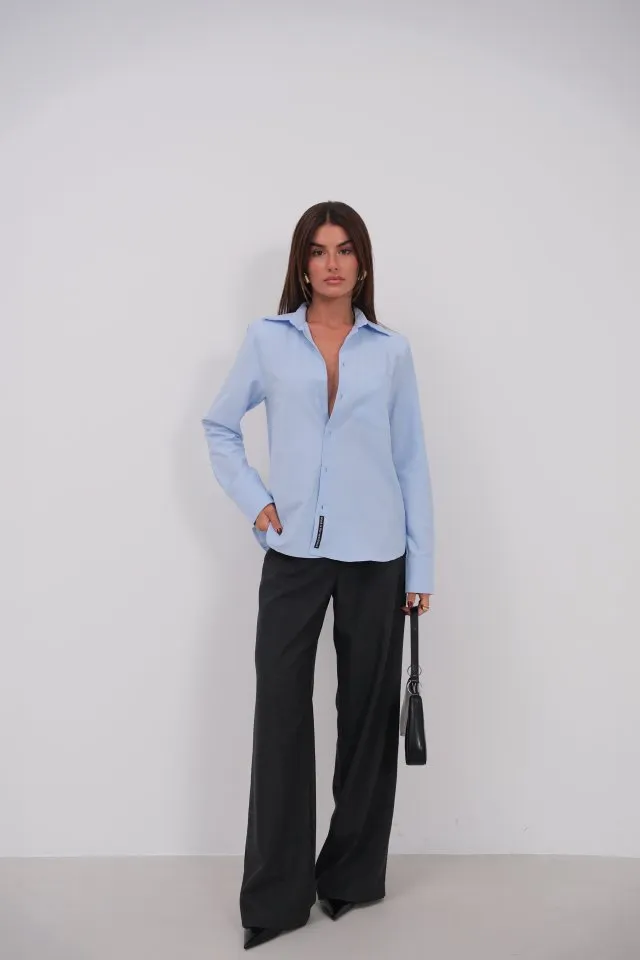 قميص سادة بأكمام خفاش بطول ثلاثة أرباع وأزرار أمامية للإغلاق. مصنوع من قماش ناعم ومسامي. قصة مريحة، مثالية للارتداء الكاجوال في الأجواء الحارة.