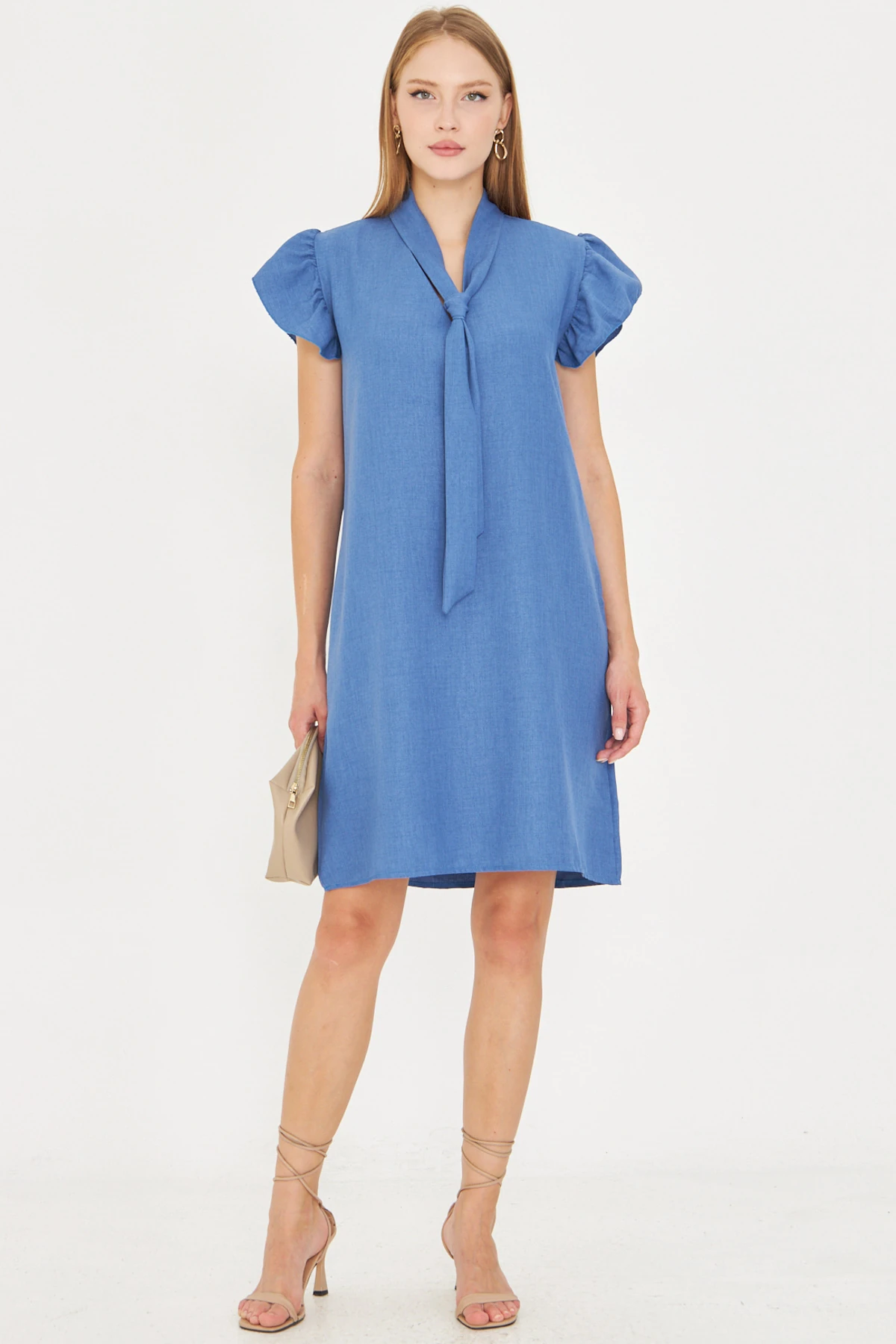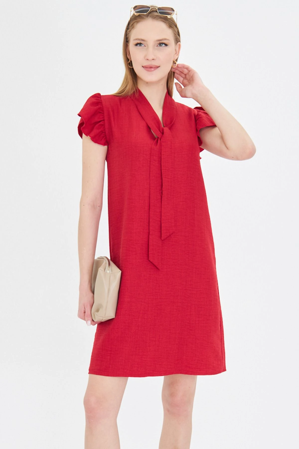 فستان سهرة ميدي بظهر مكشوف وياقة قلب مع فتحة جانبية لاطلالة صيفية واثقة وراقية