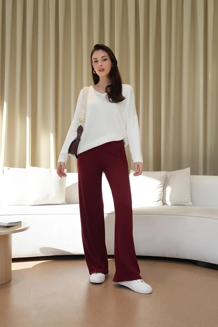 بنطال نسائي بزر واحد وتفصيل خياطة أمامية. مثالي لإطلالة يومية مرتبة وبسيطة.