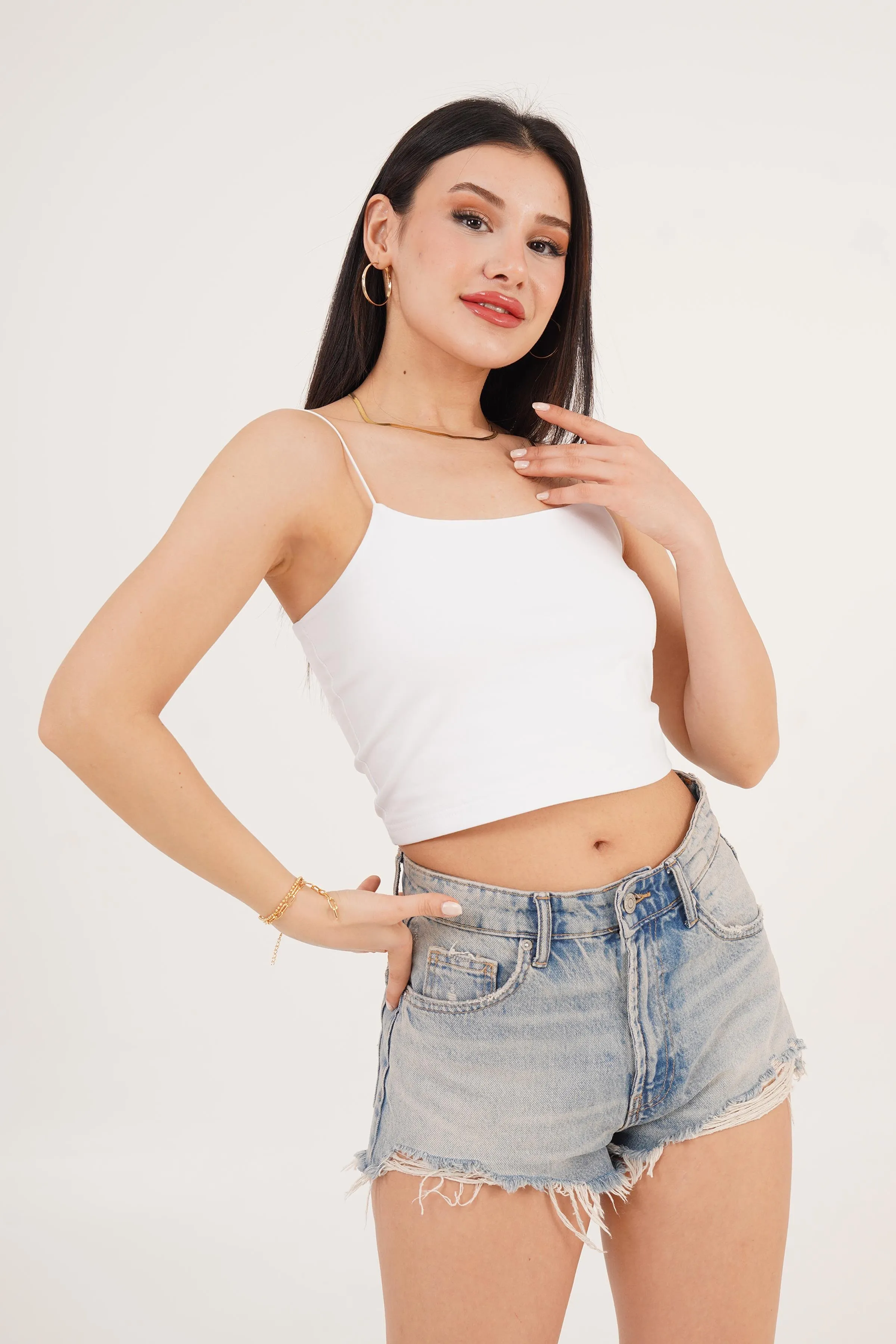 توب قصير بدون حمالات بتفاصيل ملمس للنساء