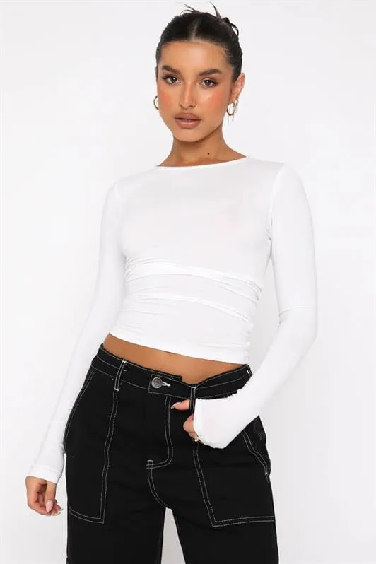 توب قصير بياقة مستديرة وأكمام طويلة للنساء - Beyond Store