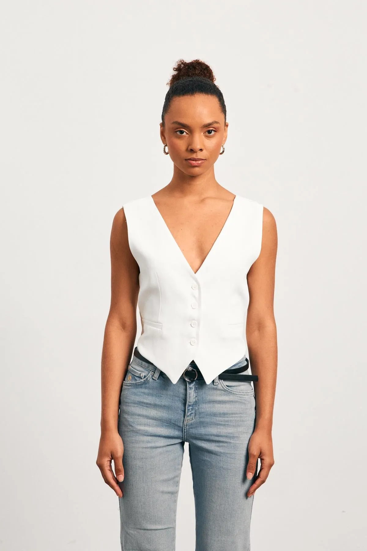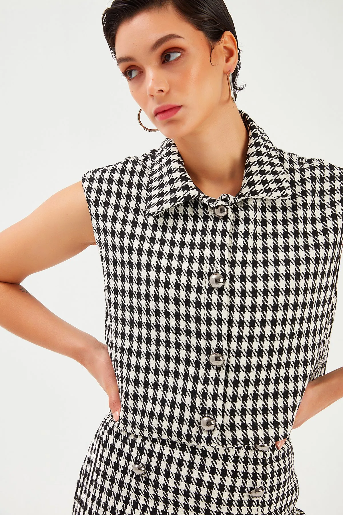 فيست نسائي جينز بقصة غير متماثلة بياقة هالتر وظهر مكشوف مع أزرار أمامية