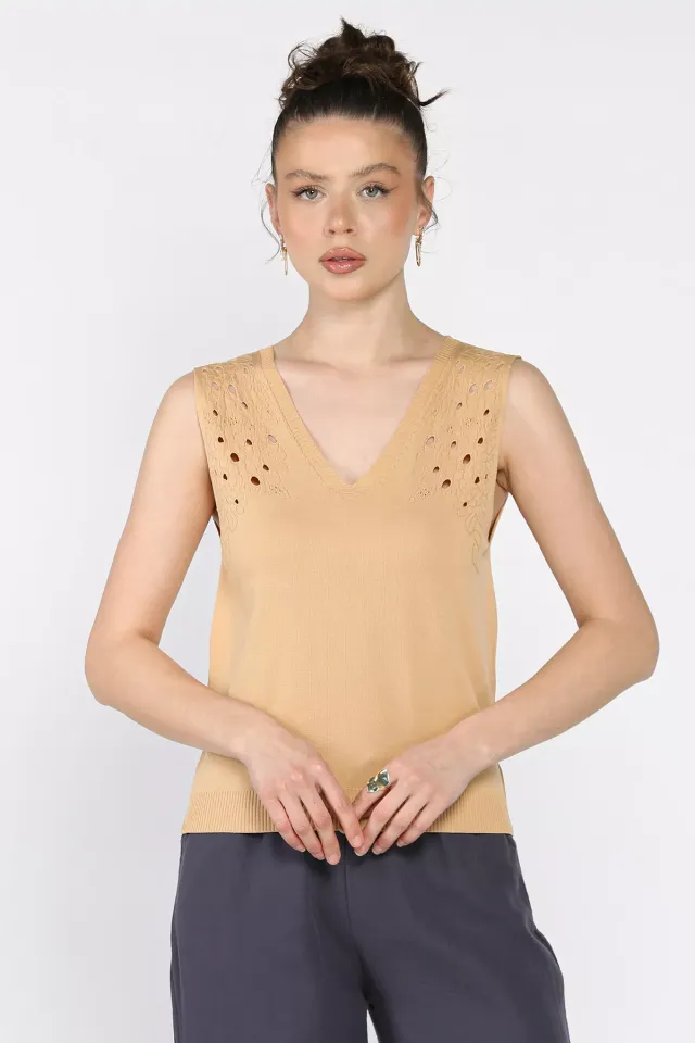 تصميم بدون أكمام بنمط كامي وياقة V جذابة وقصة ضيقة تضفي شكل جذاب
