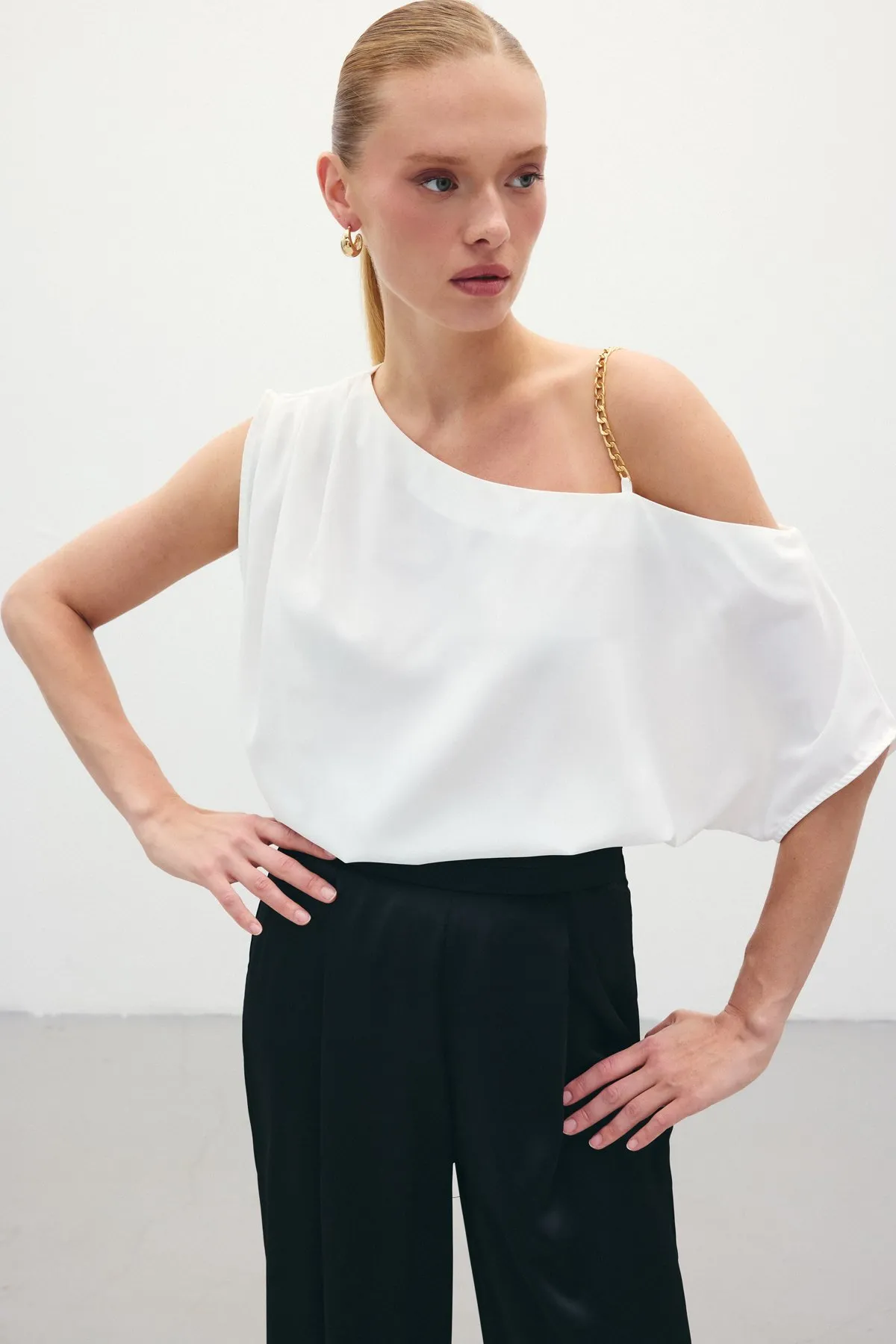 بلوزة كاجوال مضلعة بدون أكمام وكتف واحد - Beyond Store