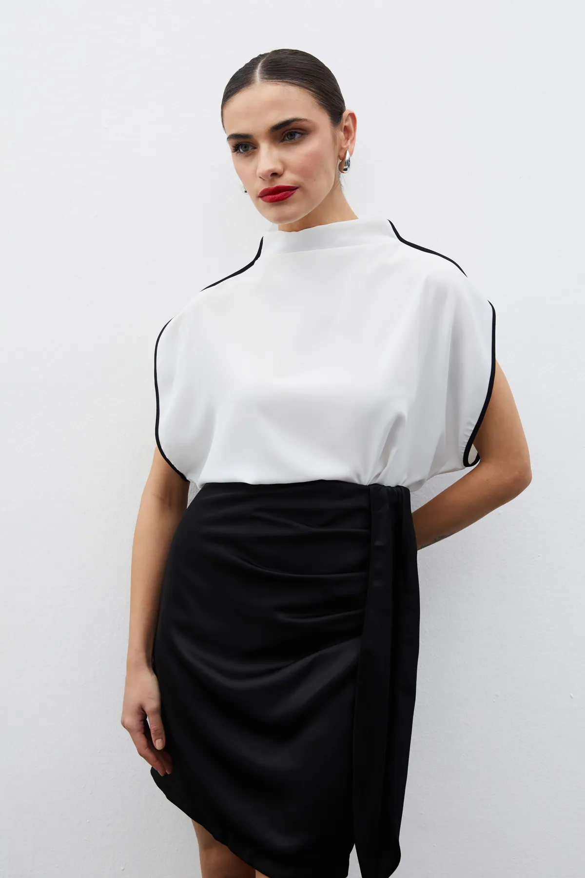 تصميم يجمع بين أكمام طويلة عادية وستايل كامي بدون أكمام وياقة على شكل V وقصة ضيقة قصيرة