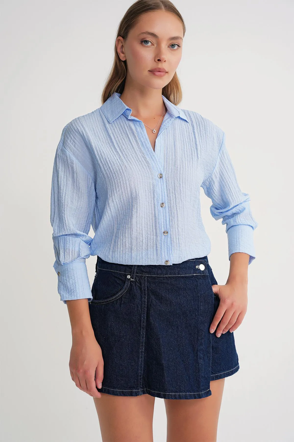 يتميز هذا القميص النسائي ذو الأكمام الطويلة بخطوط كلاسيكية وملاءمة مريحة، وهو مثالي للمظهر غير الرسمي والمهني.