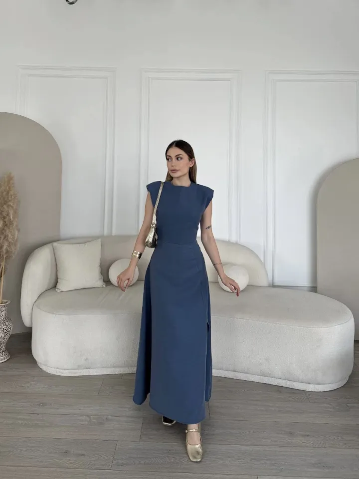 فستان ماكسي واسع بياقة هالتر بدون أكمام وأكمام راجلان مع نقش مربعات كاجوال، تصميم مريح ومنعش يناسب الأيام الصيفية، نزهات الشاطئ، أو الإطلالات اليومية بخفة وأناقة.