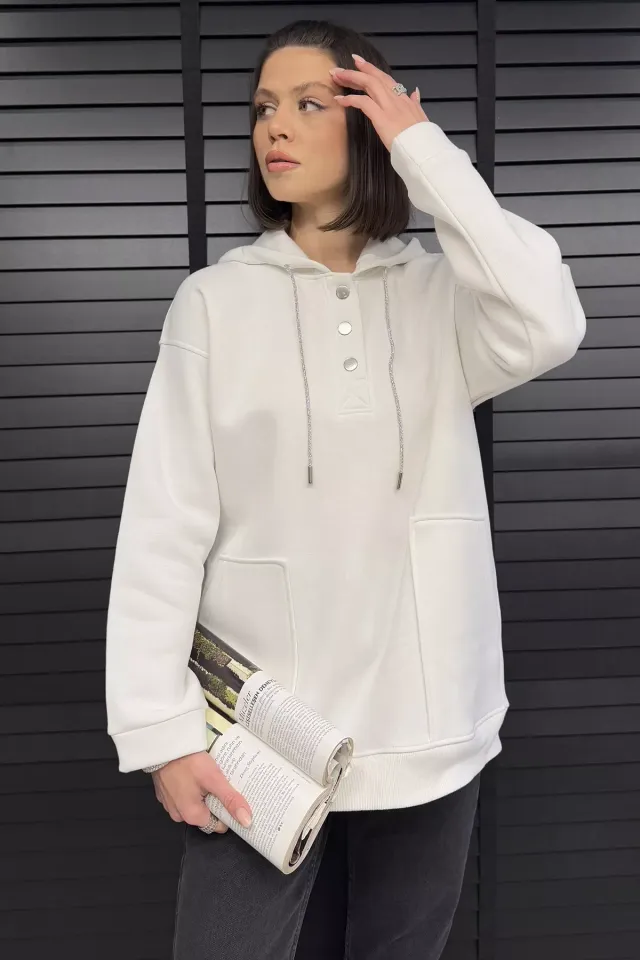 سويت شيرت نسائي بغطاء رأس وكتف منسدل وجيب مزدوج - Beyond Store