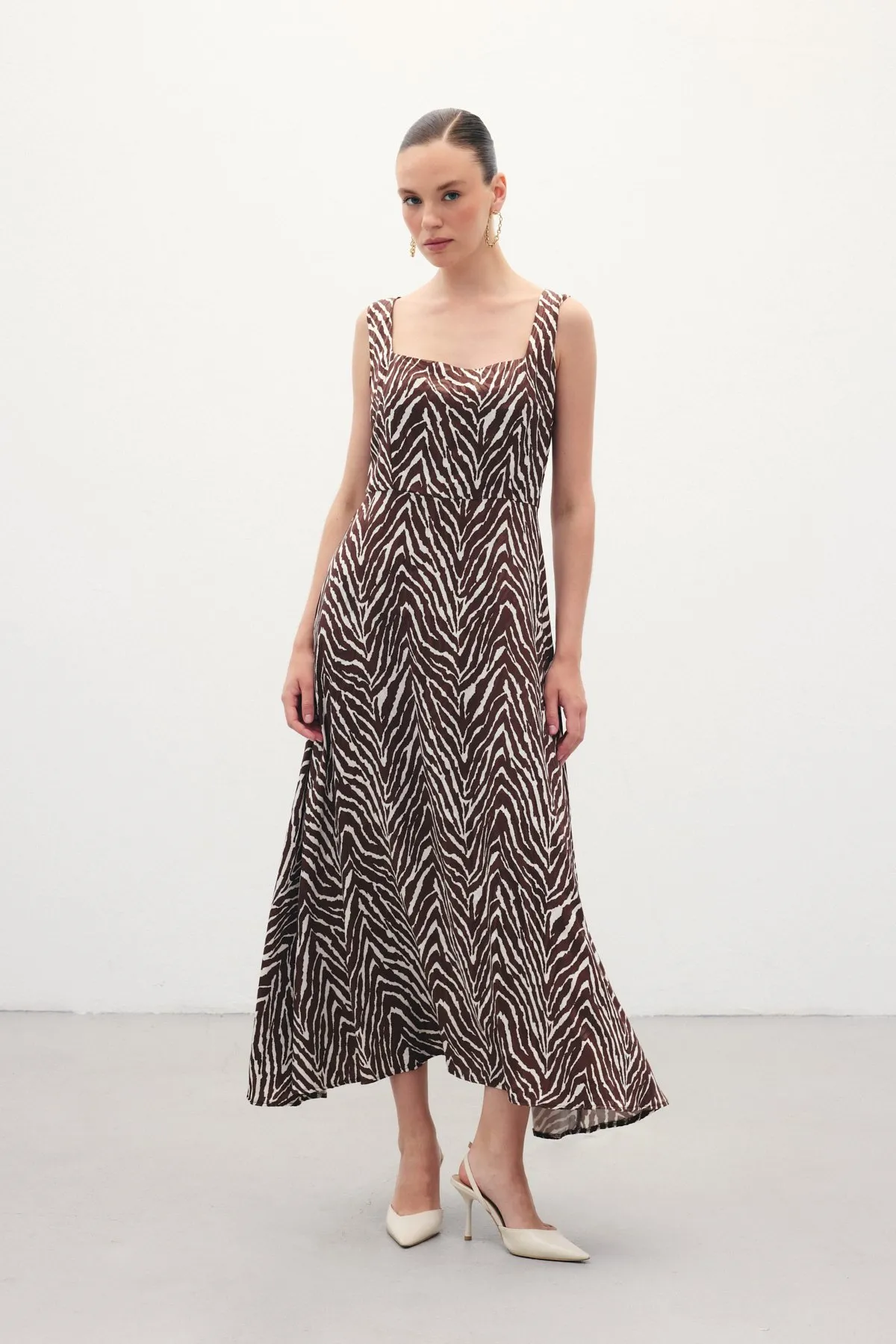 فستان ميدي منقوش بأكمام منفوخة وياقة مكشوفة للنساء - Beyond Store