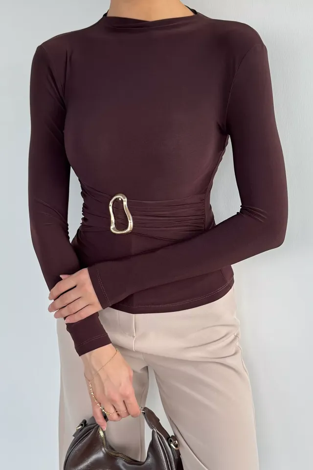 تصميم بأكمام طويلة عادية وياقة قائمة وتفاصيل غير متماثلة