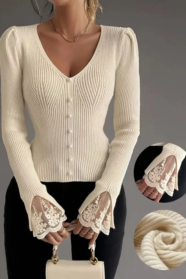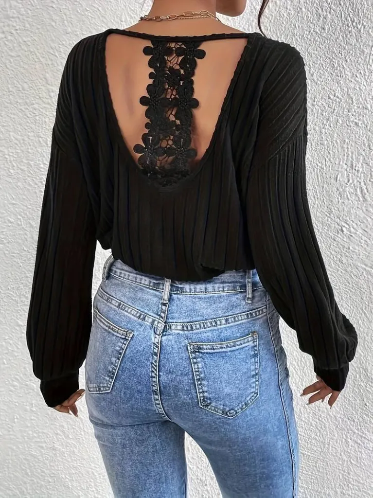 بلوزة بأكمام طويلة وياقة قائمة غير متماثلة ومنقوشة بتفاصيل ملونة