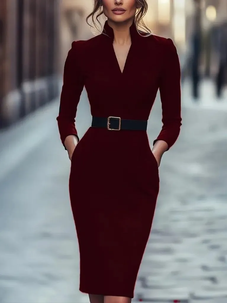 فستان قصير كلوش بياقة قائمة للنساء - Beyond Store