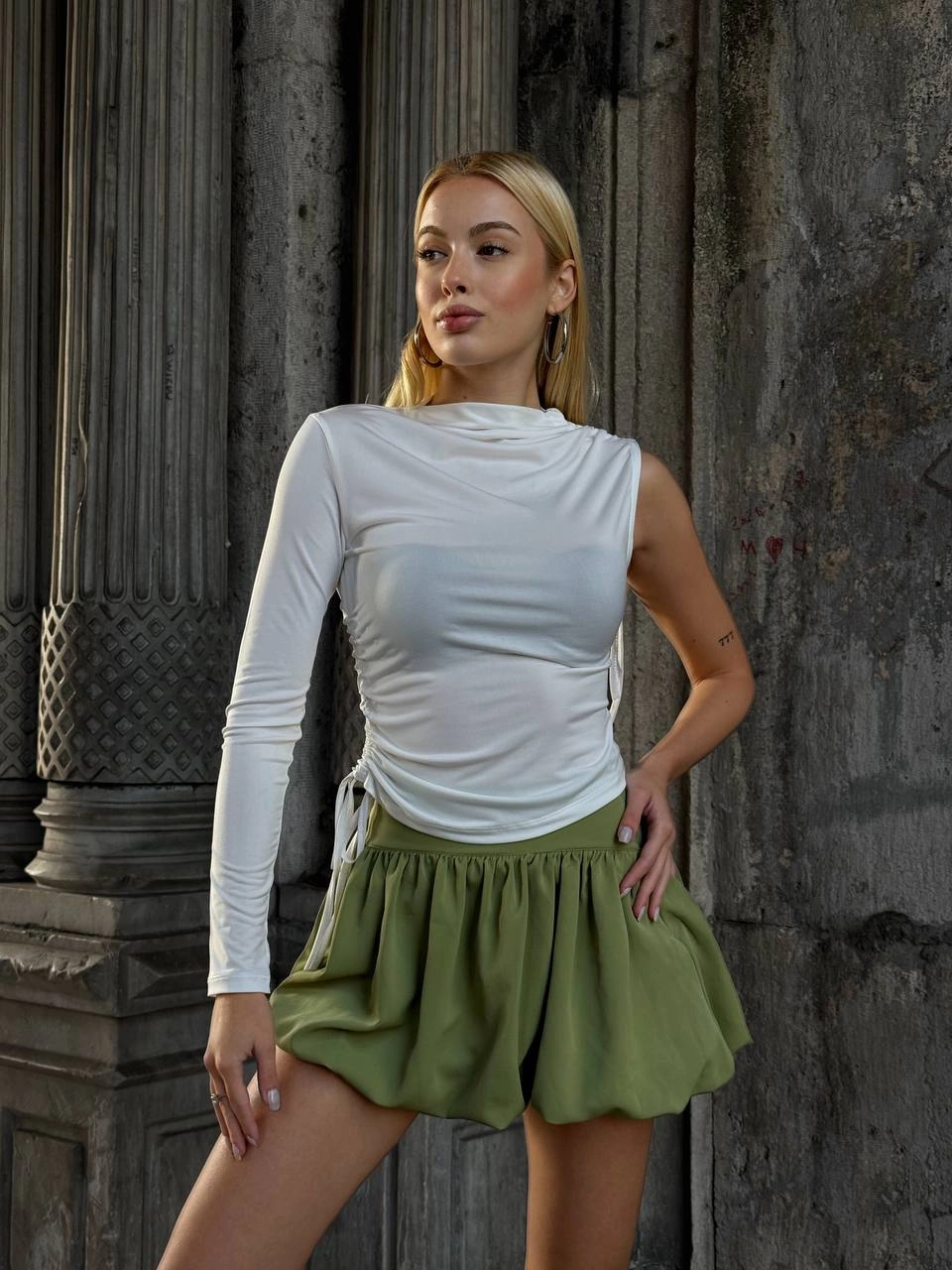 تصميم بأكمام طويلة عادية وياقة دائرية كلاسيكية