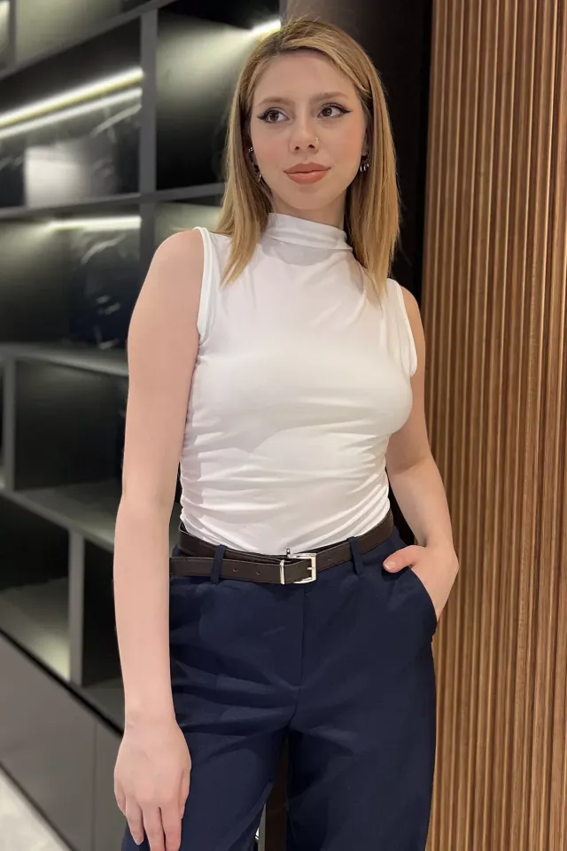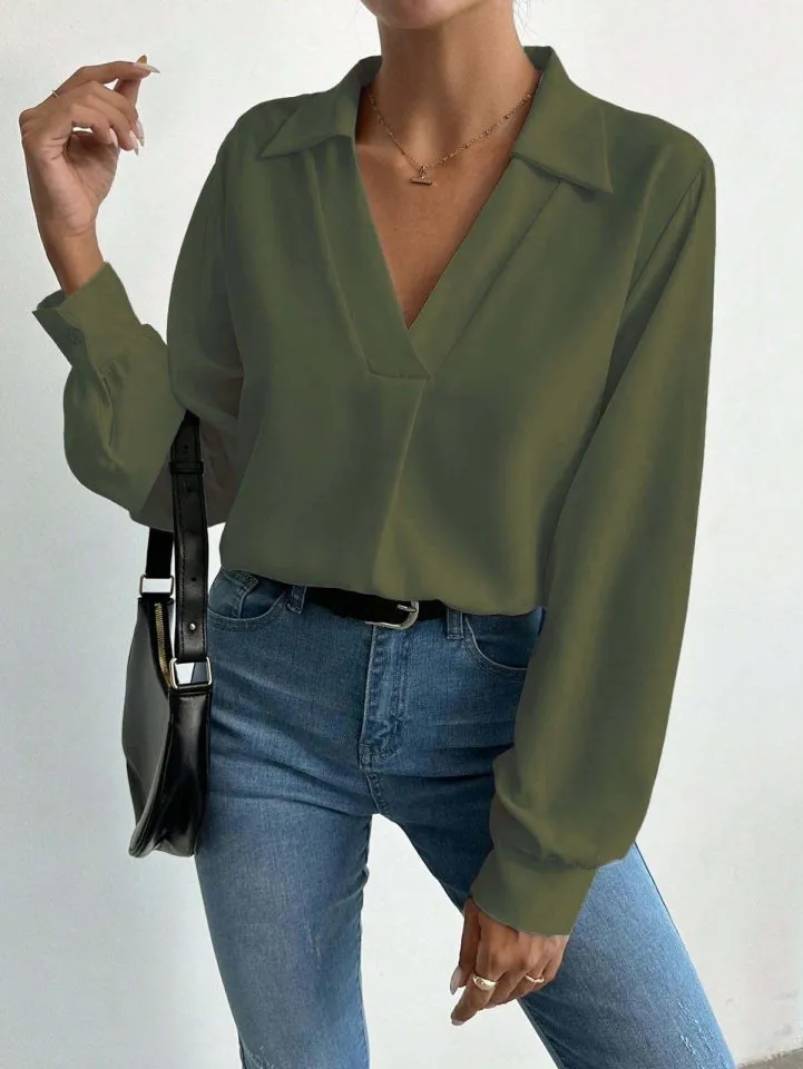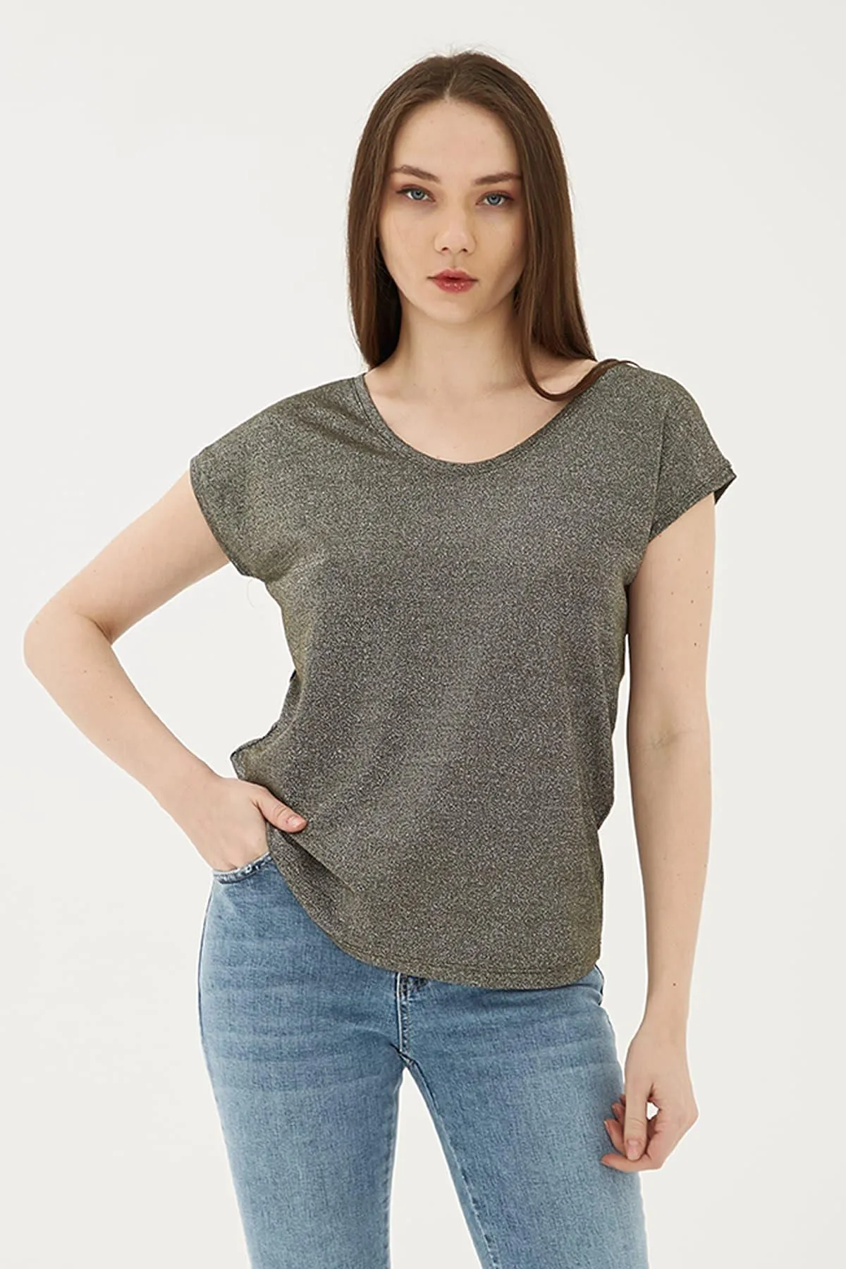 تصميم بأكمام طويلة عادية وياقة دائرية كلاسيكية