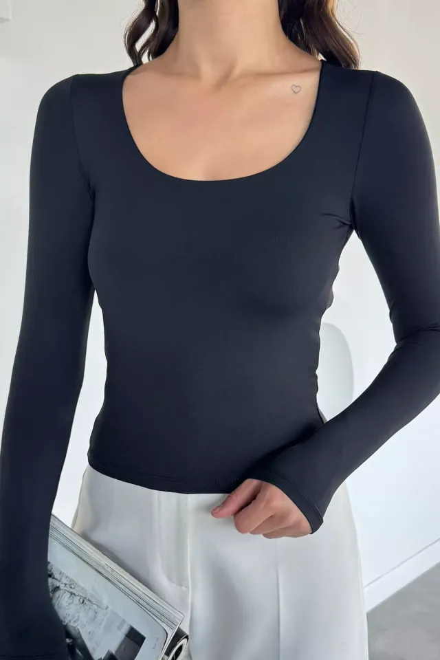 تصميم بأكمام طويلة عادية وياقة دائرية كلاسيكية