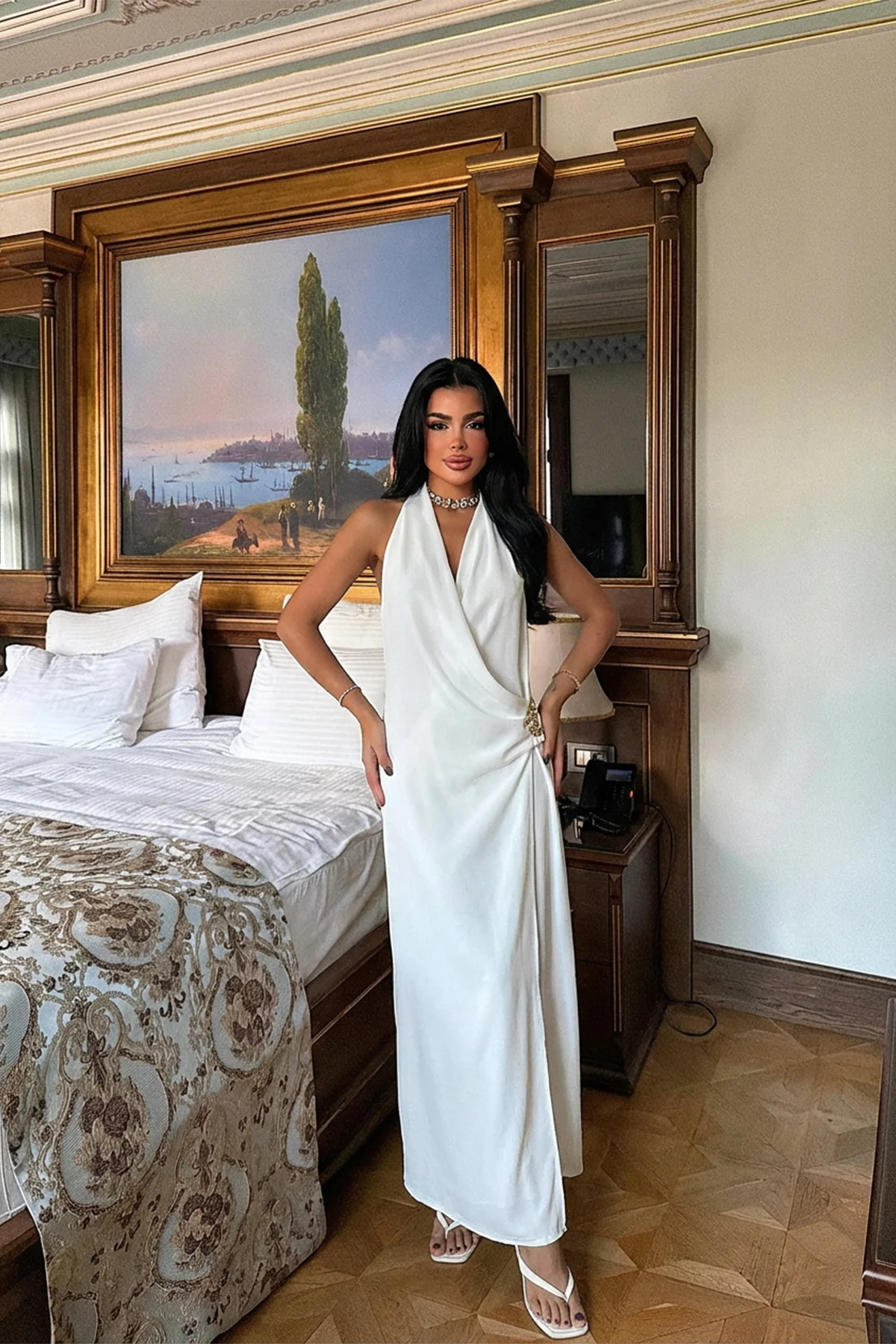 فستان سهرة قصير ضيق بحمالات رفيعة وياقة V عميقة مع ظهر مكشوف — إطلالة جريئة تناسب السهرات المميزة أو المناسبات الخاصة أو أي ليلة تبحثين فيها عن التألق. قصة ضيقة وحمالات رفيعة تمنحك أنوثة فريدة وأناقة لافتة.