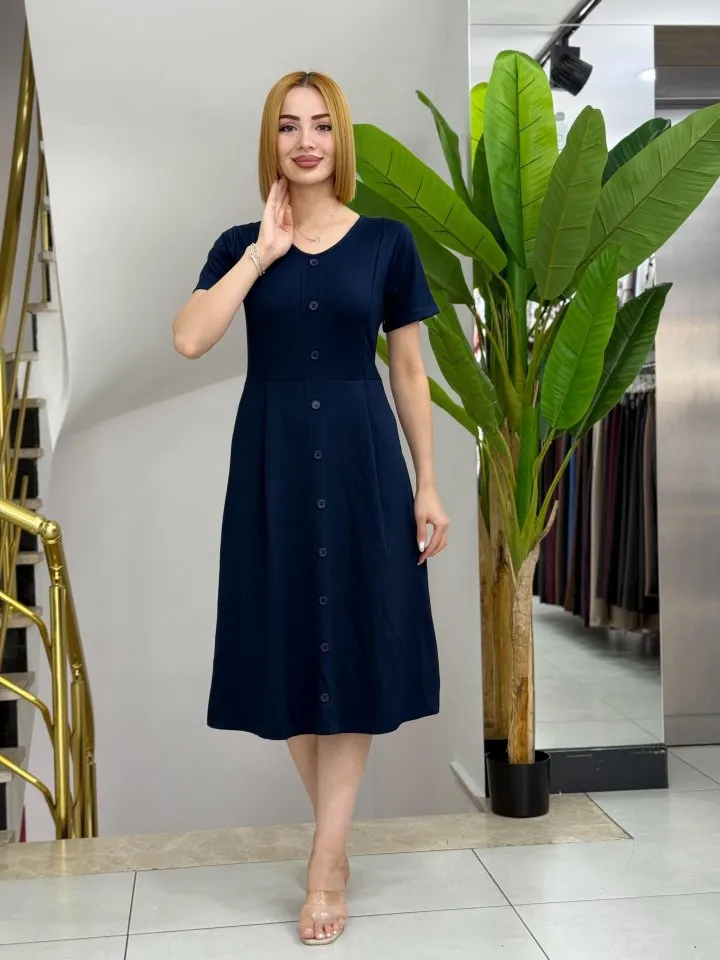 فستان قصير مزين بطبعة وأكمام طويلة وياقة دائرية كلاسيكية، مثالي للارتداء اليومي أو الطلعات المريحة التي تجمع بين الراحة والأناقة.