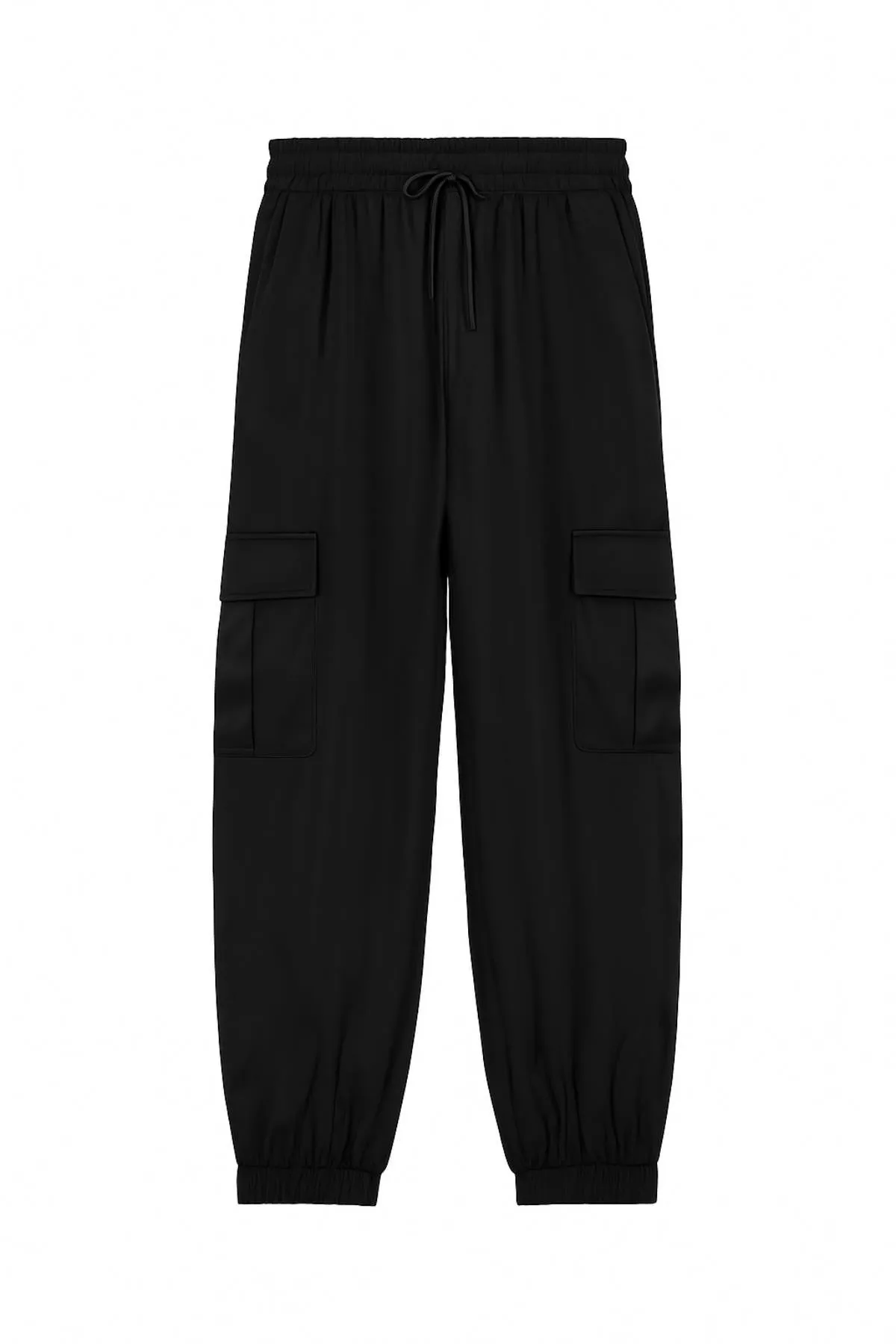 بنطال كريب بخصر مرتفع ولمعة خفيفة مع أطراف واسعة منسدلة. قطعة لافتة لإطلالة أنيقة للنساء.