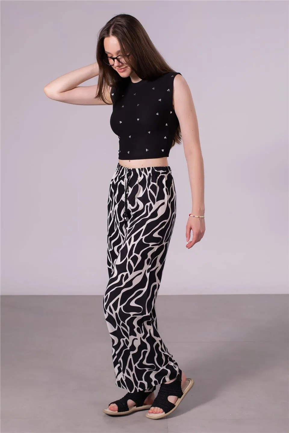 بنطال كريب بخصر مرتفع وقصة واسعة من الأسفل للنساء - Beyond Store