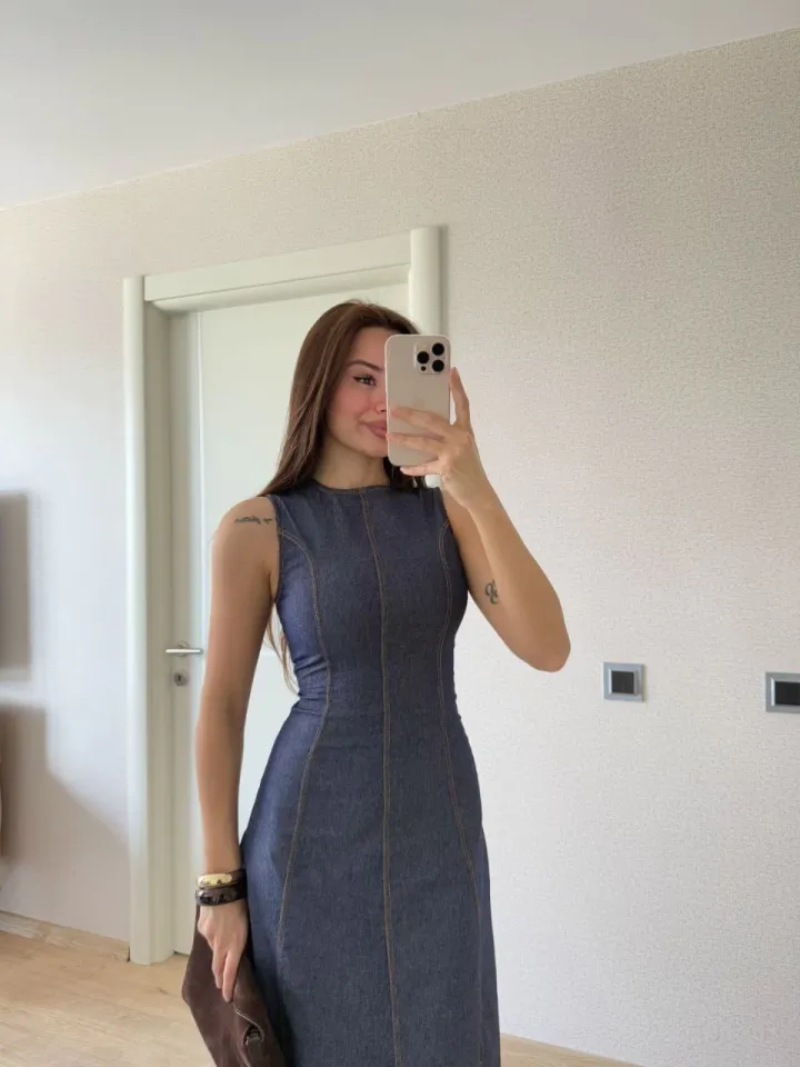 فستان تريكو قصير مضلع بياقة V وأزرار أمامية، تصميم مريح وأنيق لإطلالات يومية دافئة وعصرية.
