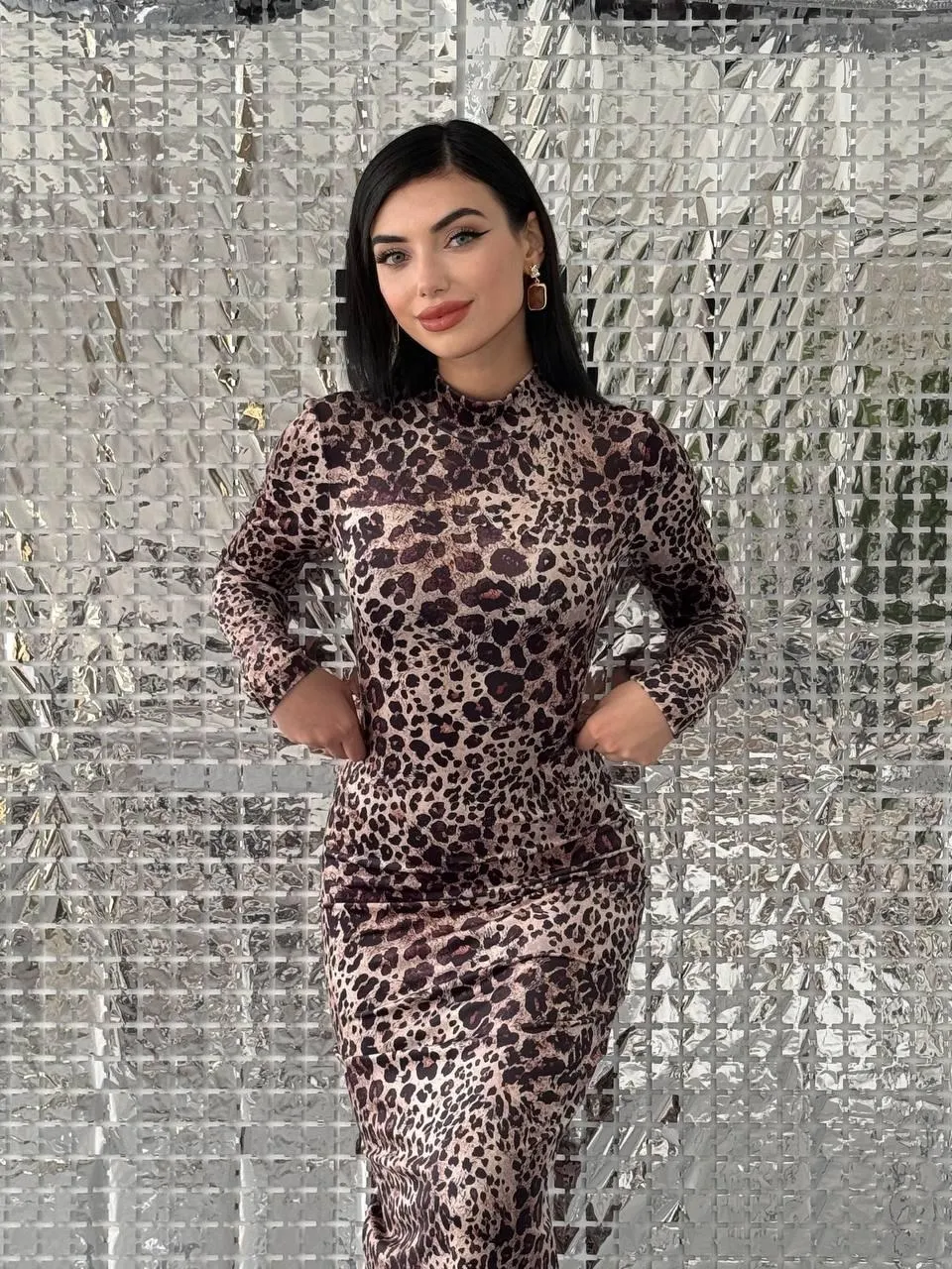 فستان قصير مزين بطبعة شمس وياقة دائرية كلاسيكية وأكمام طويلة، مثالي للطلعات الكاجوال أو الفعاليات النهارية المشمسة التي تضفي حيوية وأناقة.