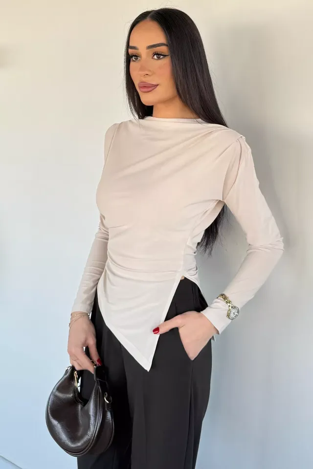 تصميم بدون أكمام وياقة على شكل V مع تفاصيل كشكش ولمسة أنيقة بحلقة زخرفية