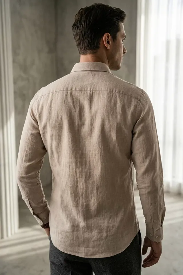 قميص رجالي كتان بأكمام طويلة وياقة بأزرار - Beyond Store