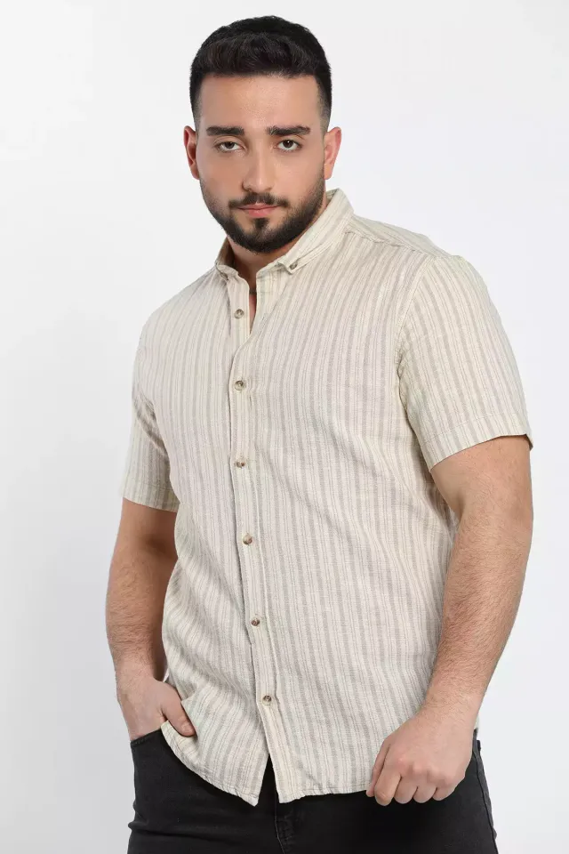 قميص رجالي كتان بأكمام طويلة وياقة بأزرار - Beyond Store