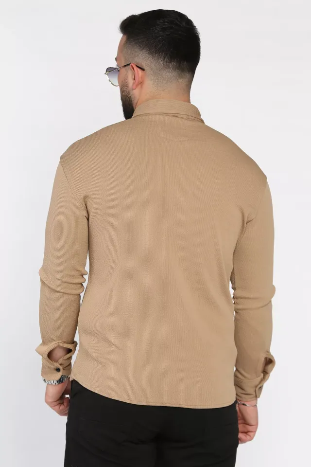 قميص قطني بأكمام طويلة وياقة كلاسيكية للرجال، مصنوع من القطن ١٠٠٪. ناعم، يسمح بمرور الهواء، ومثالي للارتداء اليومي. سهل العناية، ويمكن غسله في الغسالة على درجة حرارة ٣٠ درجة مئوية.