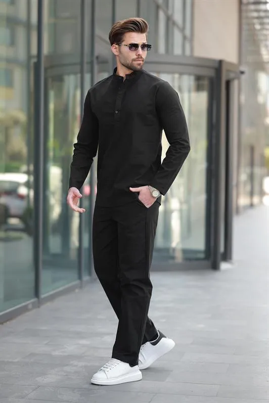 قميص موسلين مخطط بياقة ماندرين للرجال، مصنوع من قطن ١٠٠٪. هذا القماش خفيف الوزن وخفيف الوزن يضمن راحة طوال اليوم، بينما يُضفي التصميم المخطط وياقة ماندرين لمسةً أنيقةً وعملية. قابل للغسل في الغسالة على درجة حرارة ٣٠ درجة مئوية.