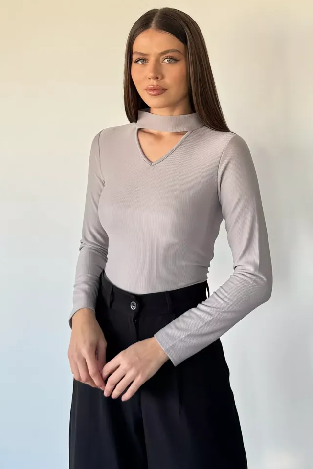 بلوزة كاجوال برقبة دائرية وتفاصيل حجرية لامعة - Beyond Store