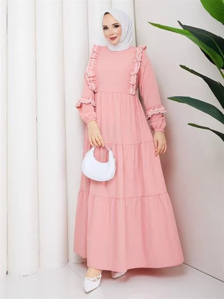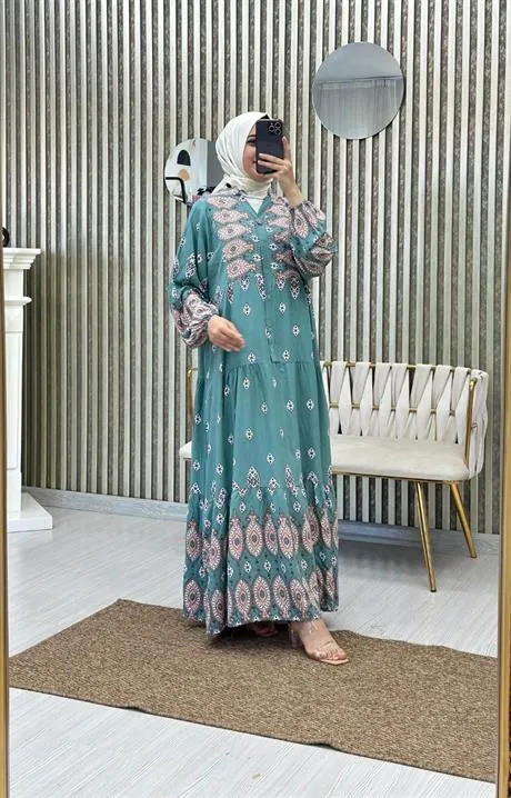 فستان حجاب مزود بربطة عنق أنيقة، تصميم محتشم يوفر تغطية مريحة وأسلوب راقٍ، مناسب للطلعات الكاجوال أو المناسبات الخاصة.