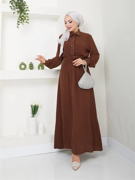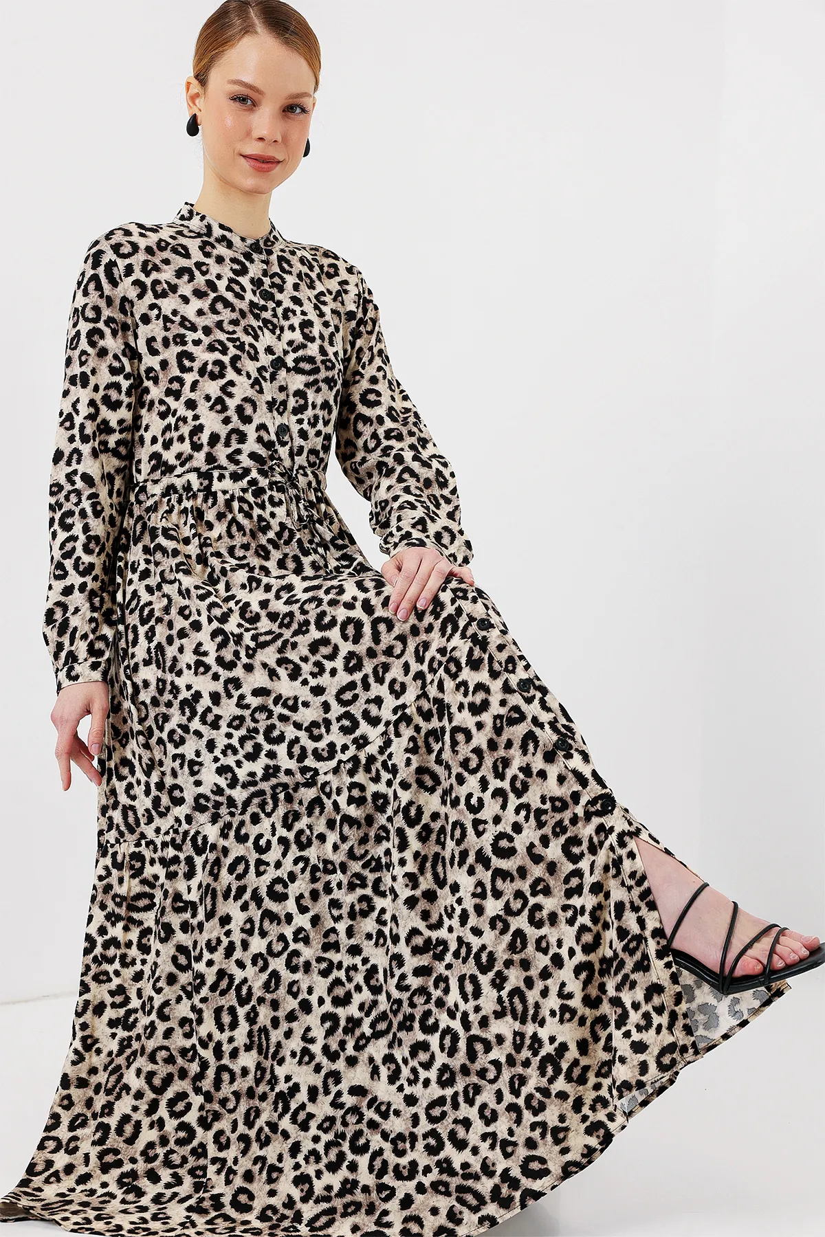 فستان حجاب منقوش بلون فوشيا حيوي، تصميم محتشم يوفر تغطية مريحة وأناقة عصرية، مناسب للطلعات الكاجوال أو المناسبات الاحتفالية.