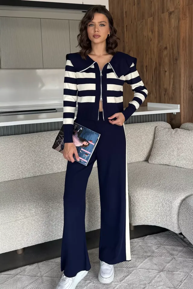 طقم نسائي كاجوال، يتكون من تونيك بأكمام طويلة ورقبة دائرية، مع بنطلون مريح. مصنوع من قماش كتان ناعم لراحة فائقة.