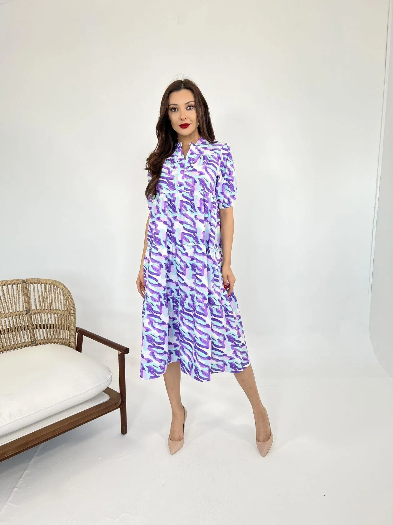 فستان قصير بقصة A وياقة دائرية، مصنوع من مزيج خفيف من الكتان والفيسكوز لراحة فائقة. تصميمه البسيط والأنيق يُبرز جمال قوامكِ ويضفي لمسة أنثوية ناعمة، مثالي للأيام الدافئة والمشمسة. قابل للغسل في الغسالة على درجة حرارة 30 درجة مئوية.