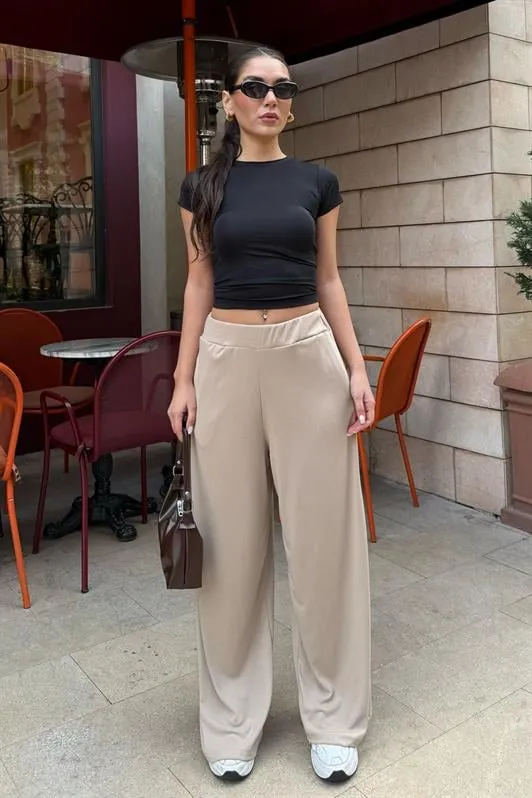 بنطلون واسع بكسرات وخصر مطاطي وقصة مريحة. مثالي للإطلالات اليومية المنسابة للنساء.