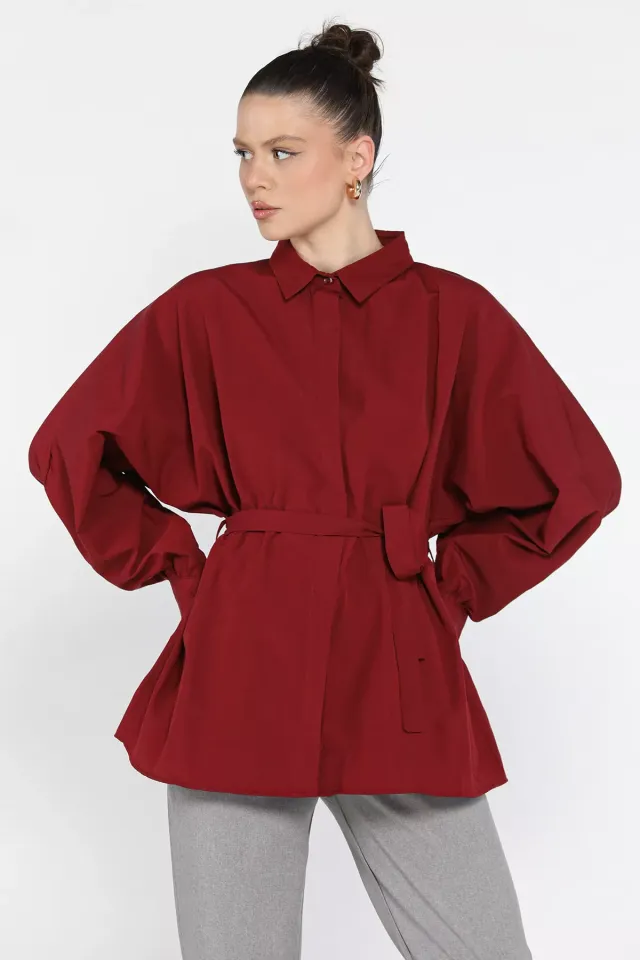 قميص مجعد كبير الحجم للنساء بأكتاف منسدلة، مصنوع من قماش ناعم وجيد التهوية مثالي لإطلالة كاجوال مريحة وأنيقة.