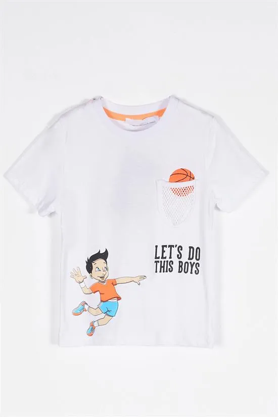 تيشيرت للأولاد بطبعة خلفية و أكمام قصيرة ورقبة دائرية - Beyond Store