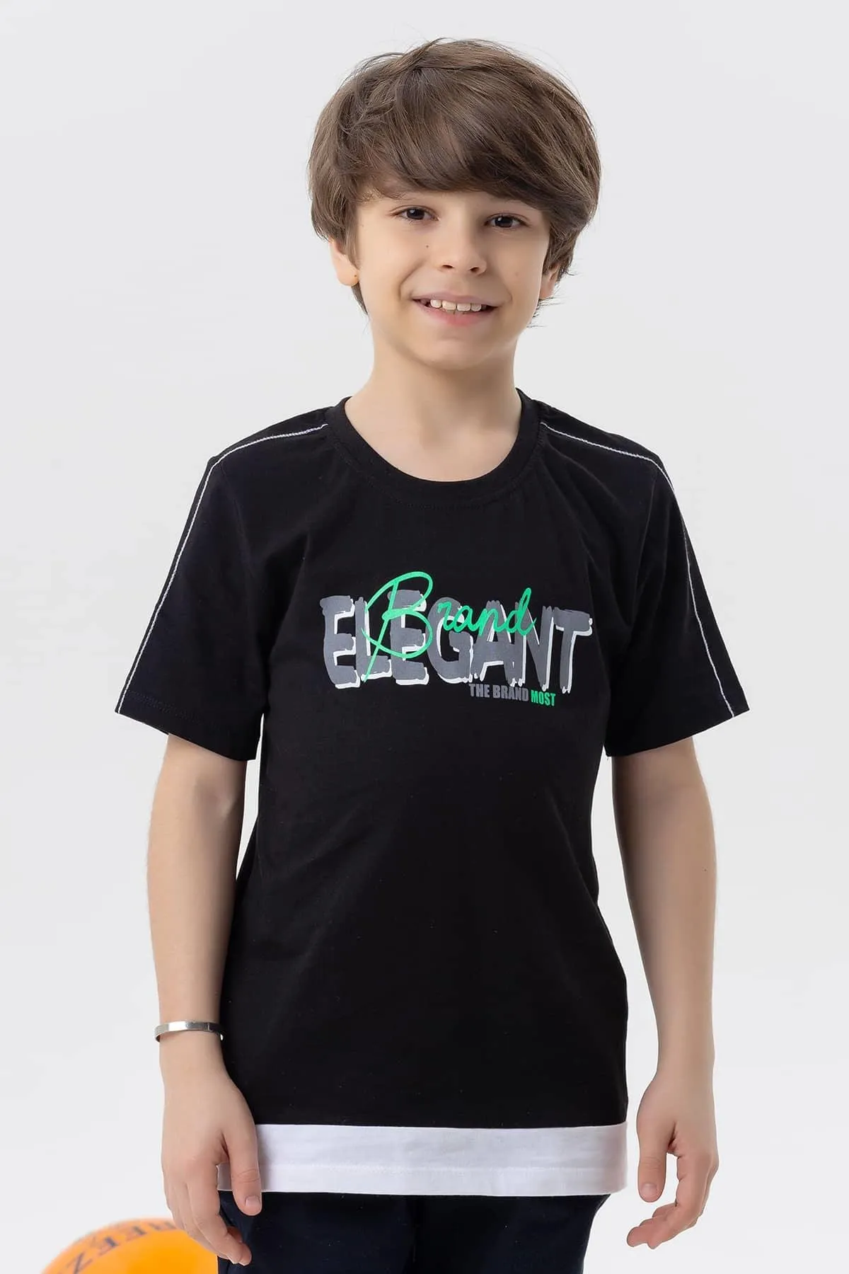 تيشيرت ولادي مطبوع بأكمام قصيرة و ياقة دائرية - Beyond Store
