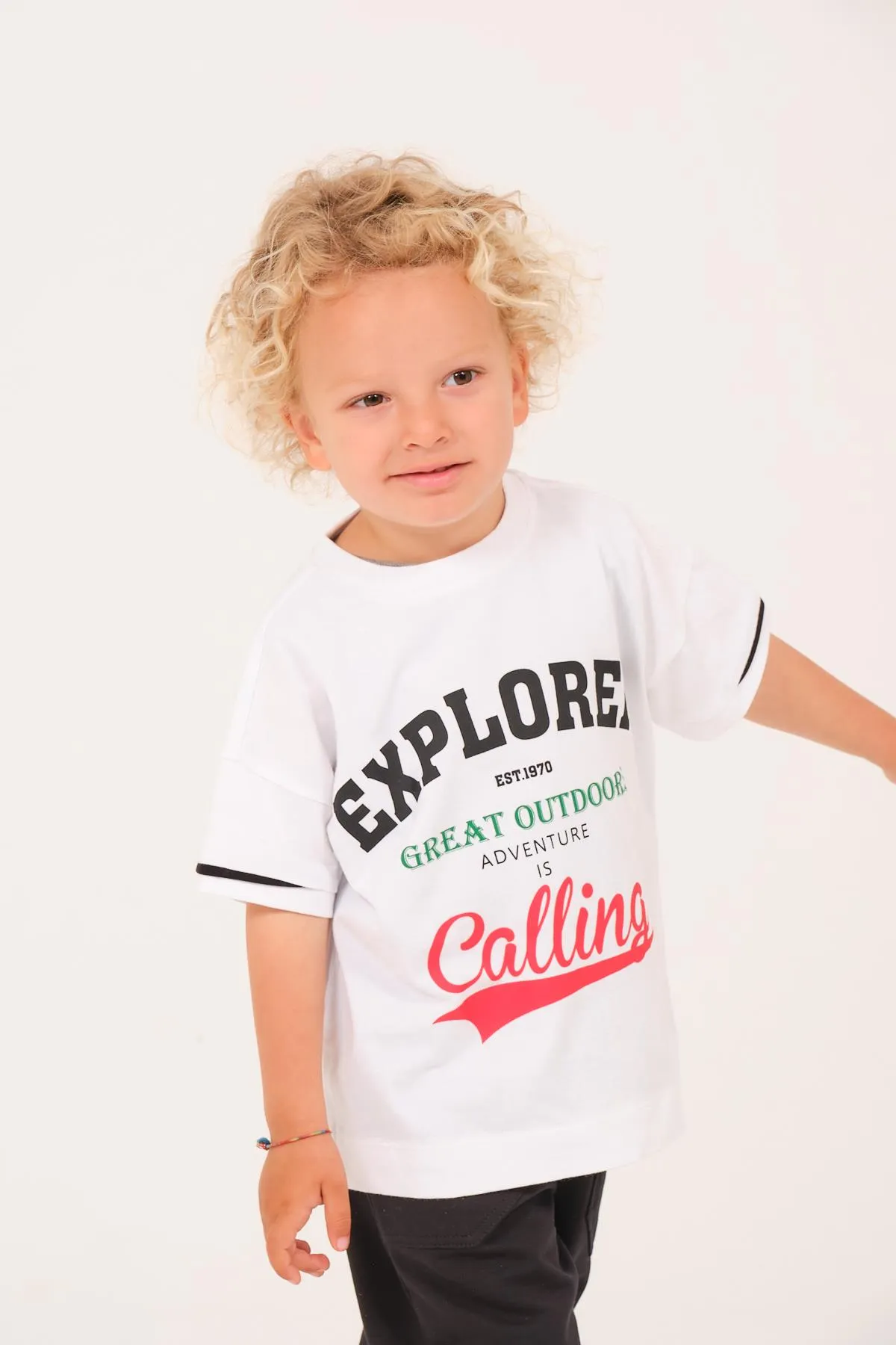 تيشيرت صيفي مطبوع بياقة دائرية و أكمام قصيرة للأولاد - Beyond Store