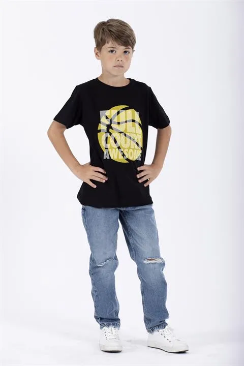 تيشيرت صيفي مطبوع بأكمام قصيرة و ياقة دائرية للأولاد - Beyond Store