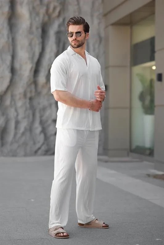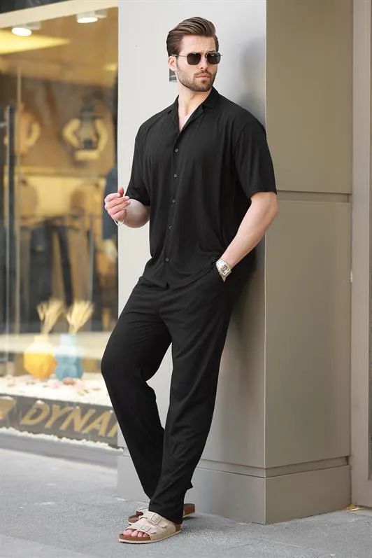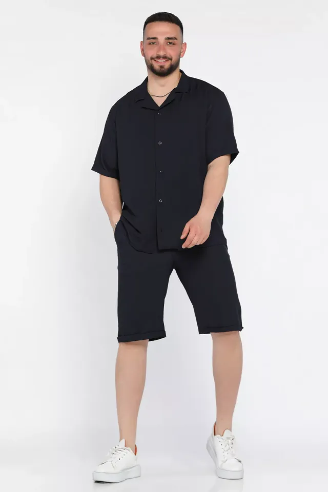 طقم رجالي كاجوال من شورت وقميص بأكمام قصيرة وخصر مرن، مصنوع من 95% قطن و5% ليكرا. يوفر راحة ومرونة مثالية للأنشطة اليومية. تصميم عملي وأنيق. قابل للغسل في الغسالة على درجة حرارة 30 درجة مئوية.