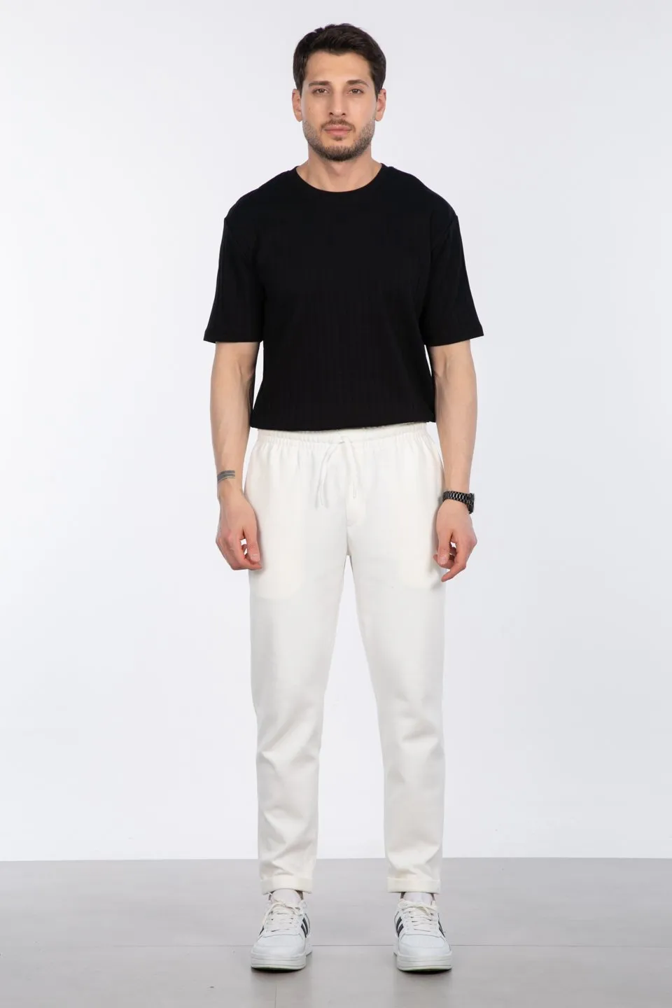 بنطال رياضي رجالي بقصّة مستقيمة، بخصر مرن وأزرار للإغلاق، يوفر راحةً ومظهرًا عصريًا. مصنوع من 98% بوليستر و2% إيلاستين. قابل للغسل على درجة حرارة 40 درجة مئوية، مثالي للارتداء اليومي.
