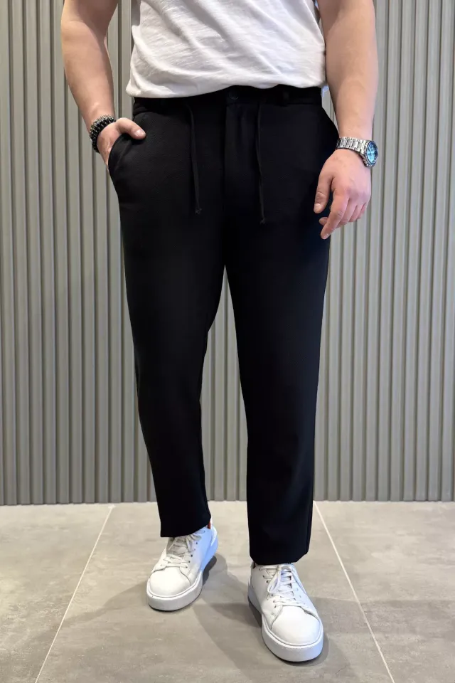 بنطال رياضي بقصّة مستقيمة وخصر مطاطي للرجال