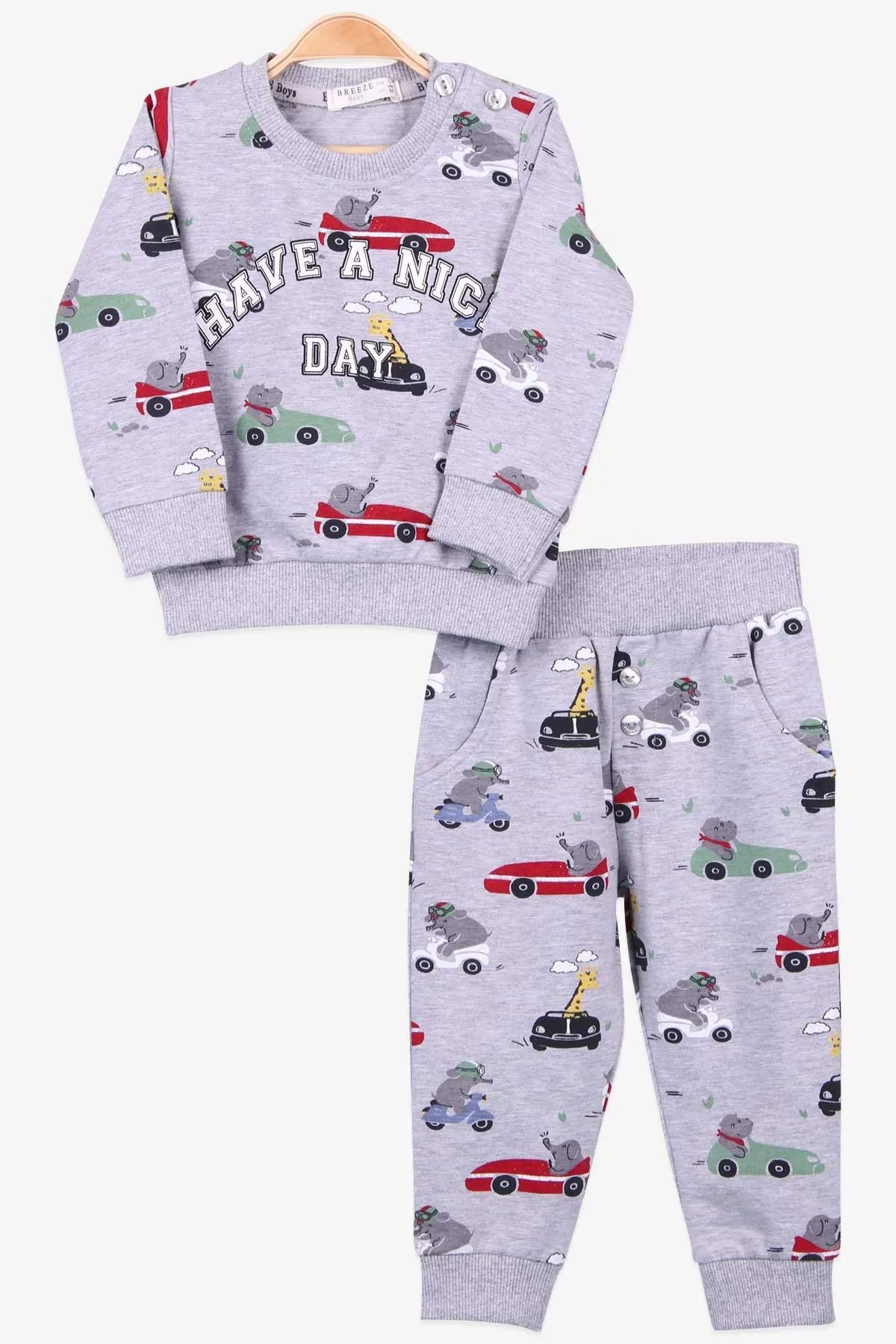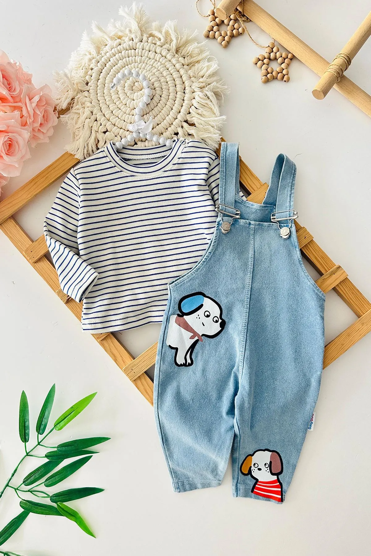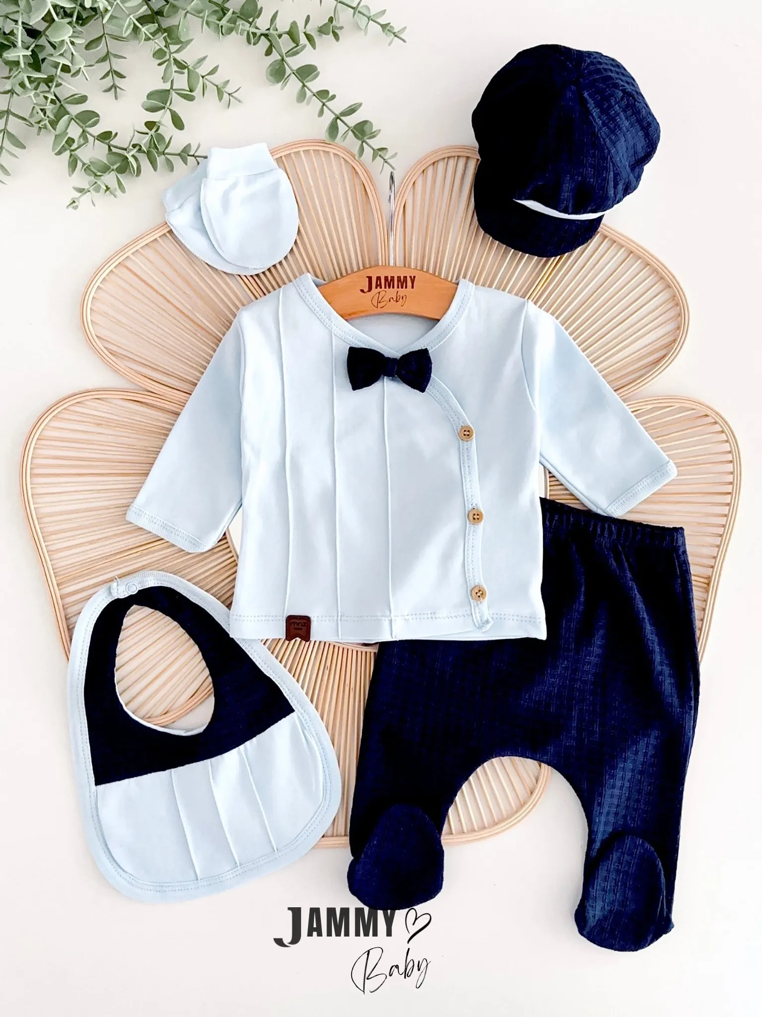 طقم قطني بياقة على شكل حرف V مع تطريز للأولاد الصغار - Beyond Store