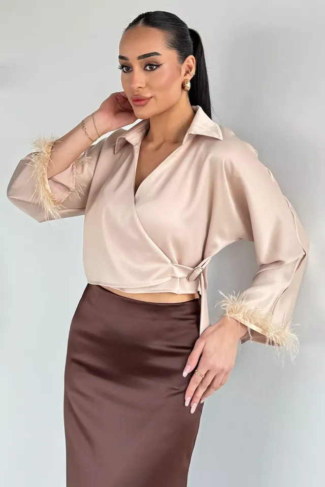 بلوزة نسائية بياقة دائرية واكمام قصيرة ونقشة قلوب