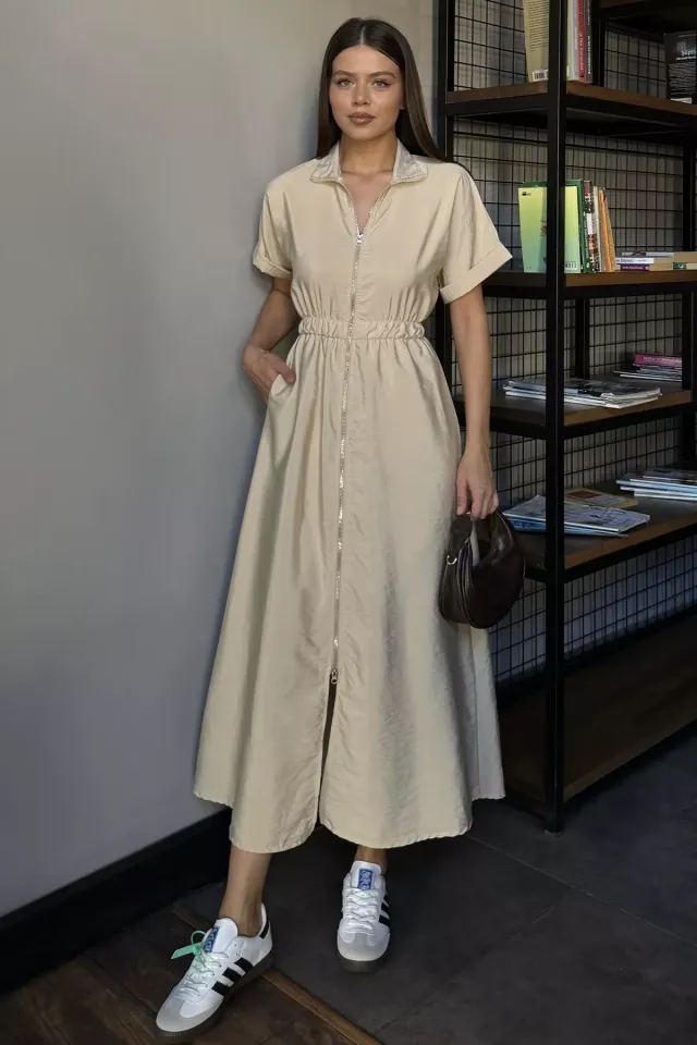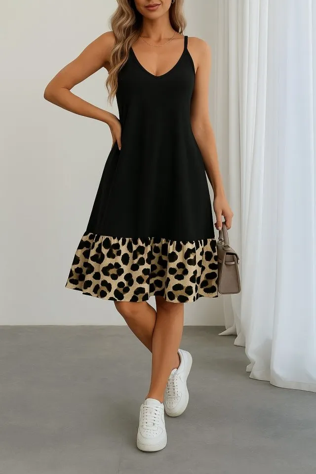 فستان ميني ضيق بنقشة فهد بكتف واحد وجوانب مزمومة مع كم طويل، تصميم جريء يعكس ثقة الإطلالة الصيفية المسائية
