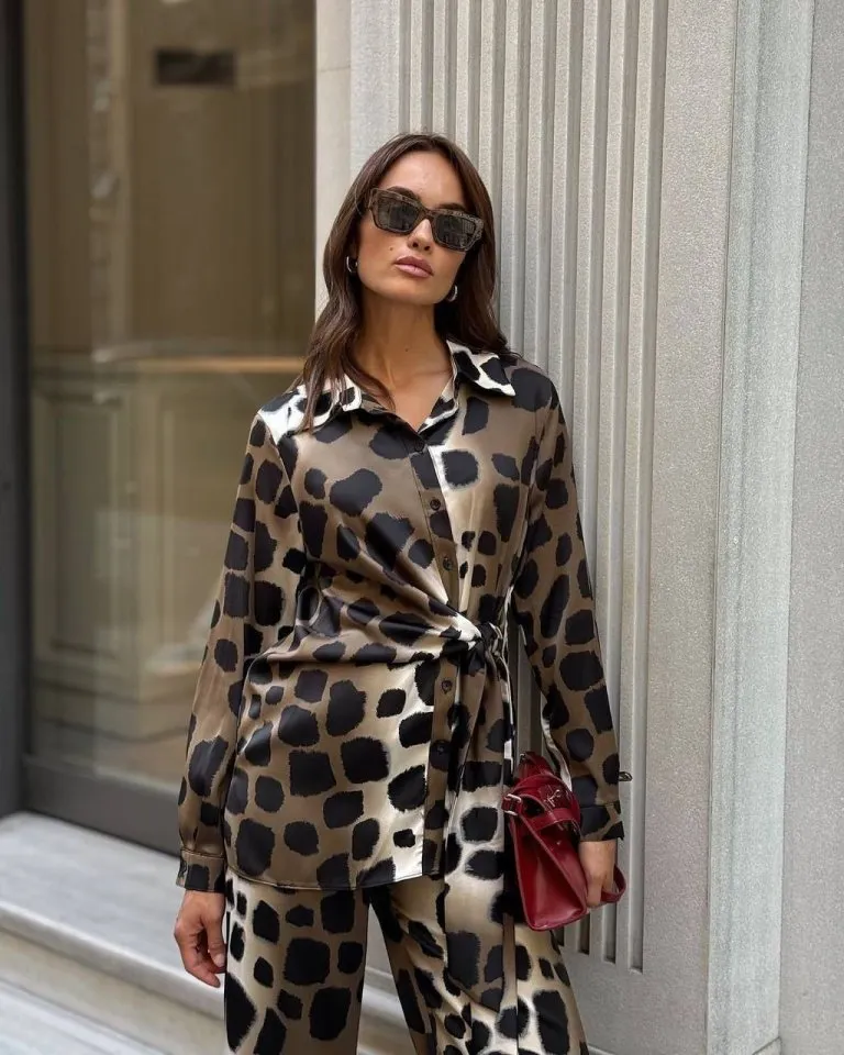 طقم بلوزة قصيرة بأكمام طويلة و بنطلون للنساء