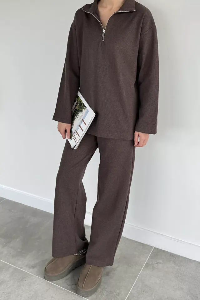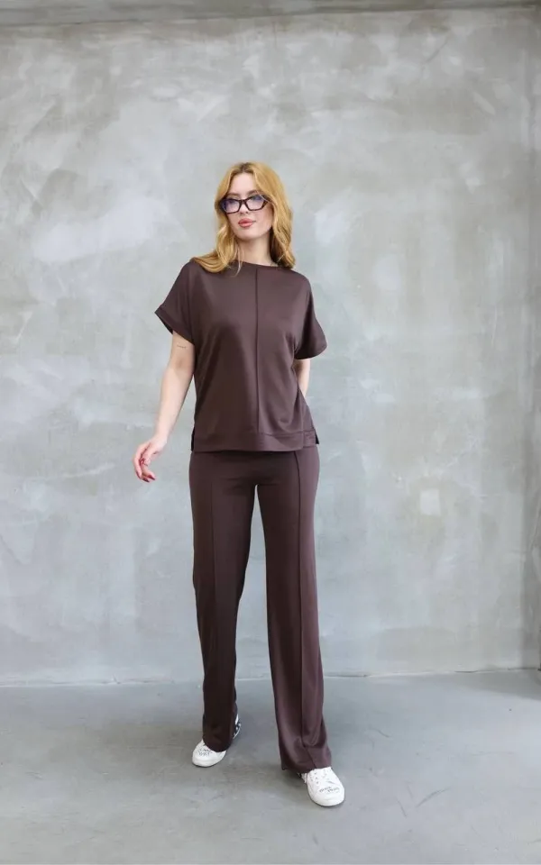 طقم بلوزة قصيرة بأكمام طويلة و بنطلون للنساء - Beyond Store